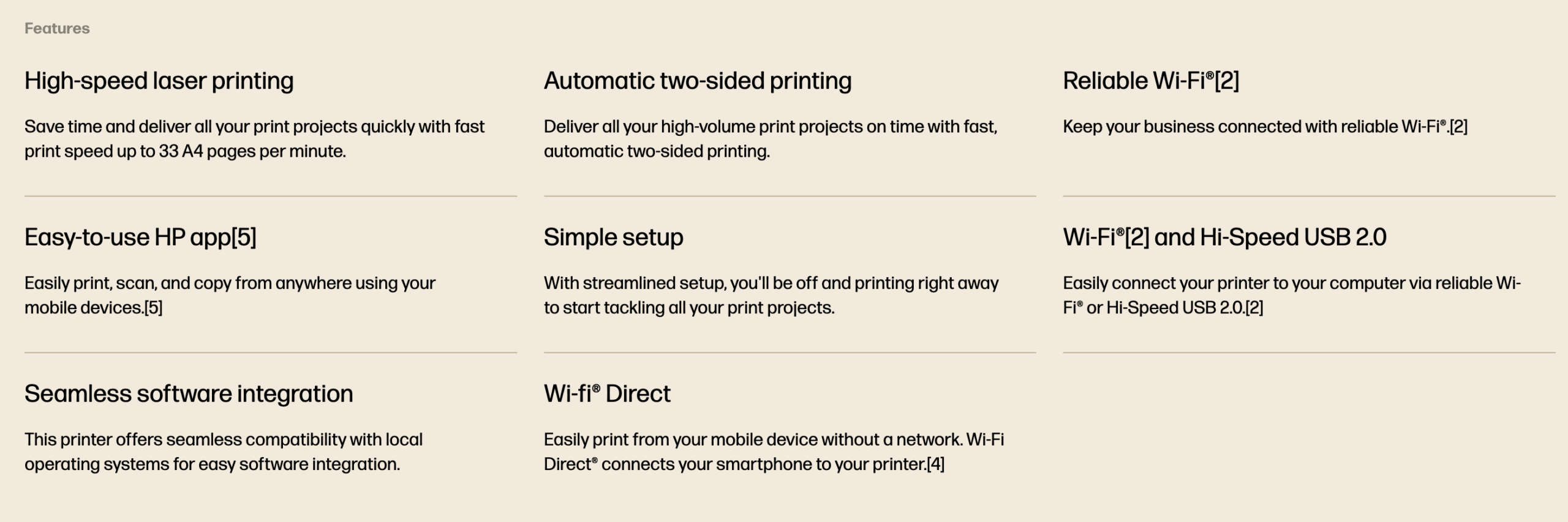 Wireless; Two-sided printing; Print from phone or tablet