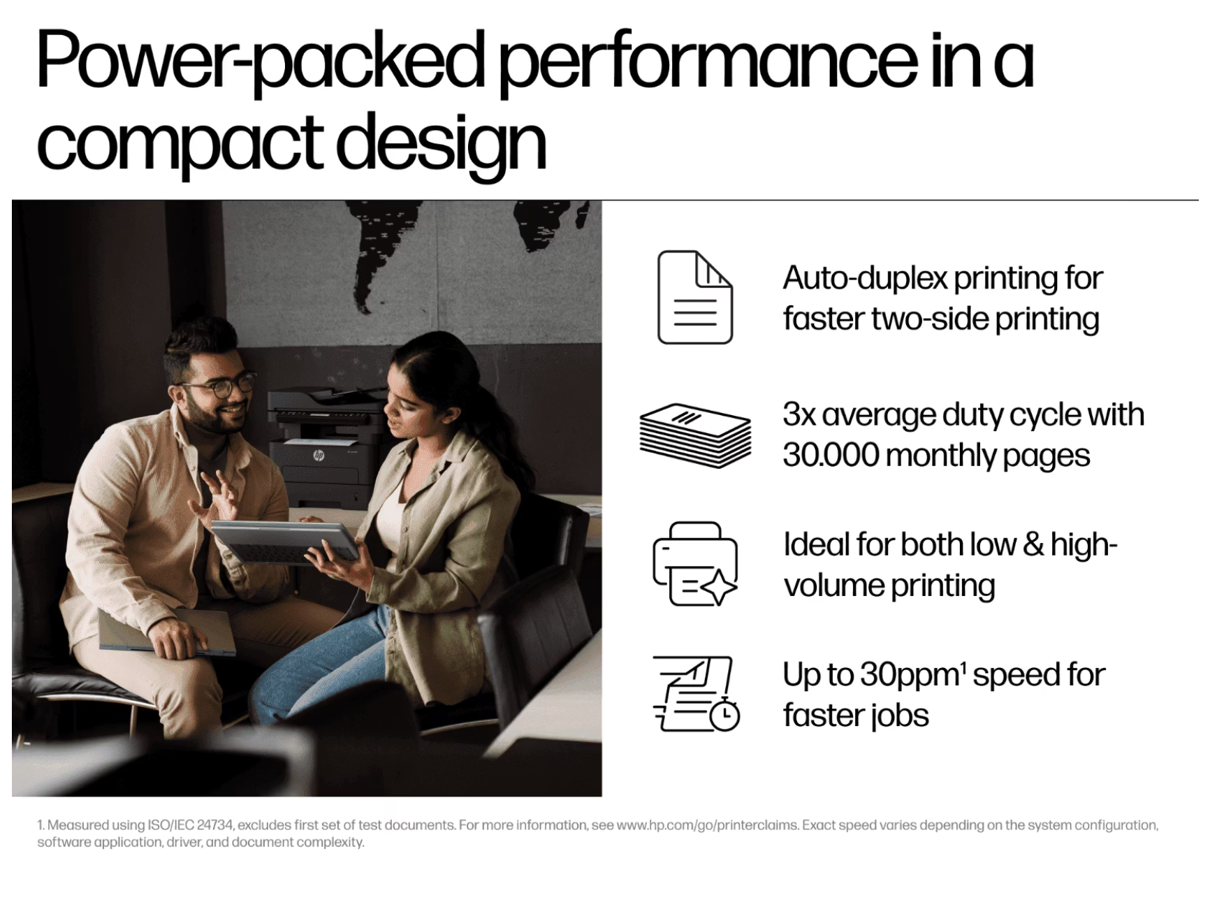 Print speed up to 30 ppm (black, A4)