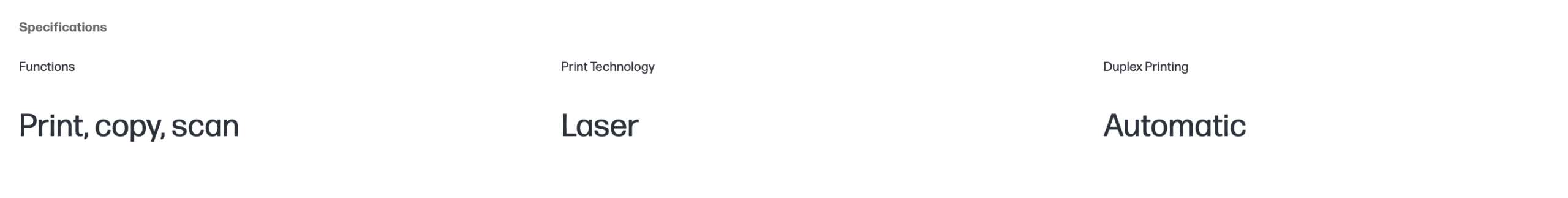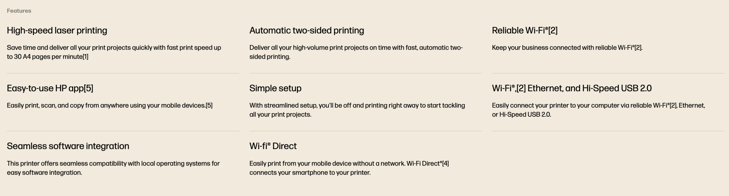 Wireless; Print from phone or tablet; Automatic document feeder; Two-sided printing